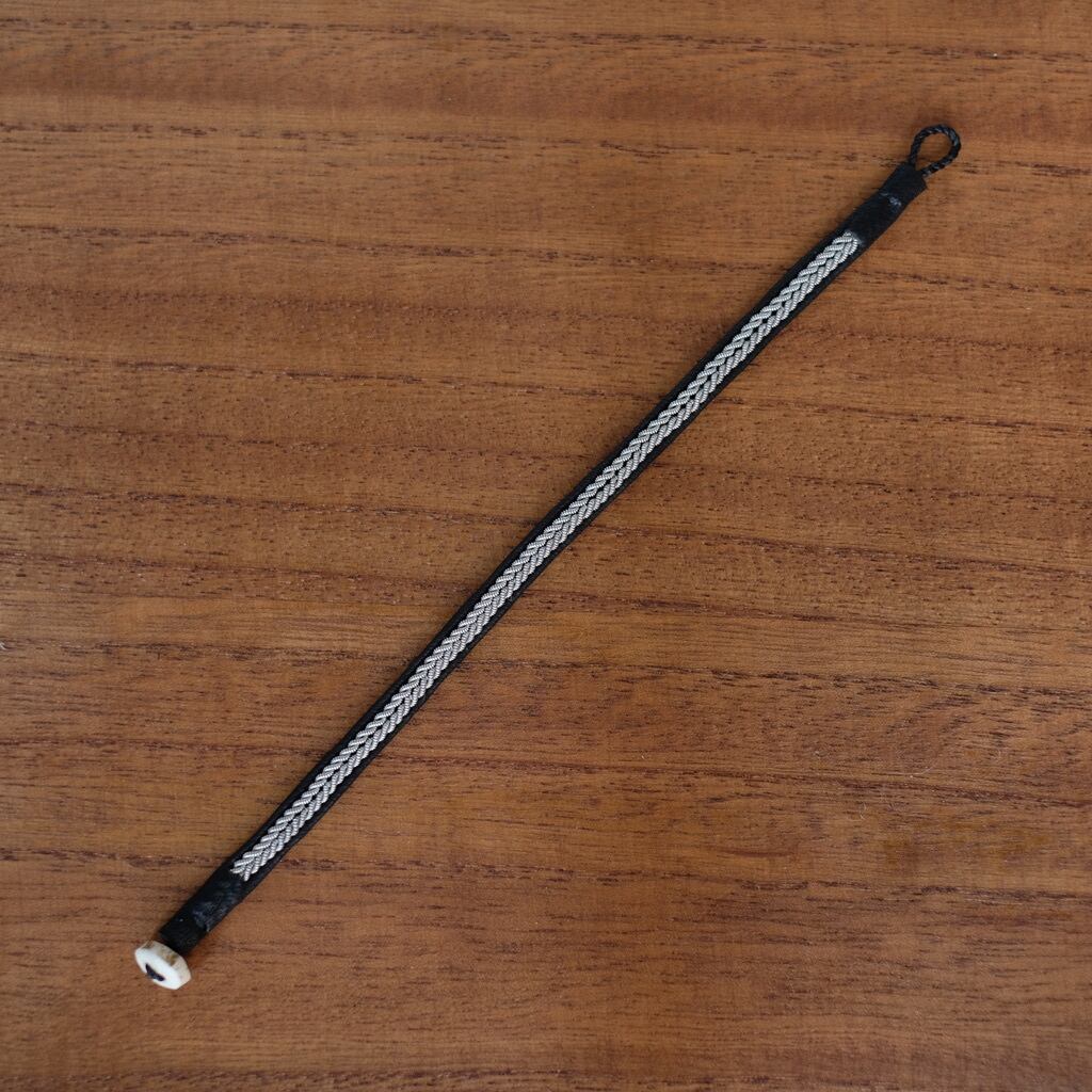 ラップランド地方の北方民族サーミの伝統工芸であるピューターワイヤー刺繍を用いてブレスレットを作りました。本場のサーミブレスレットはトナカイの革と角を使って作りますが、蝦夷鹿が大好きなので蝦夷鹿の革と角を使っています。
