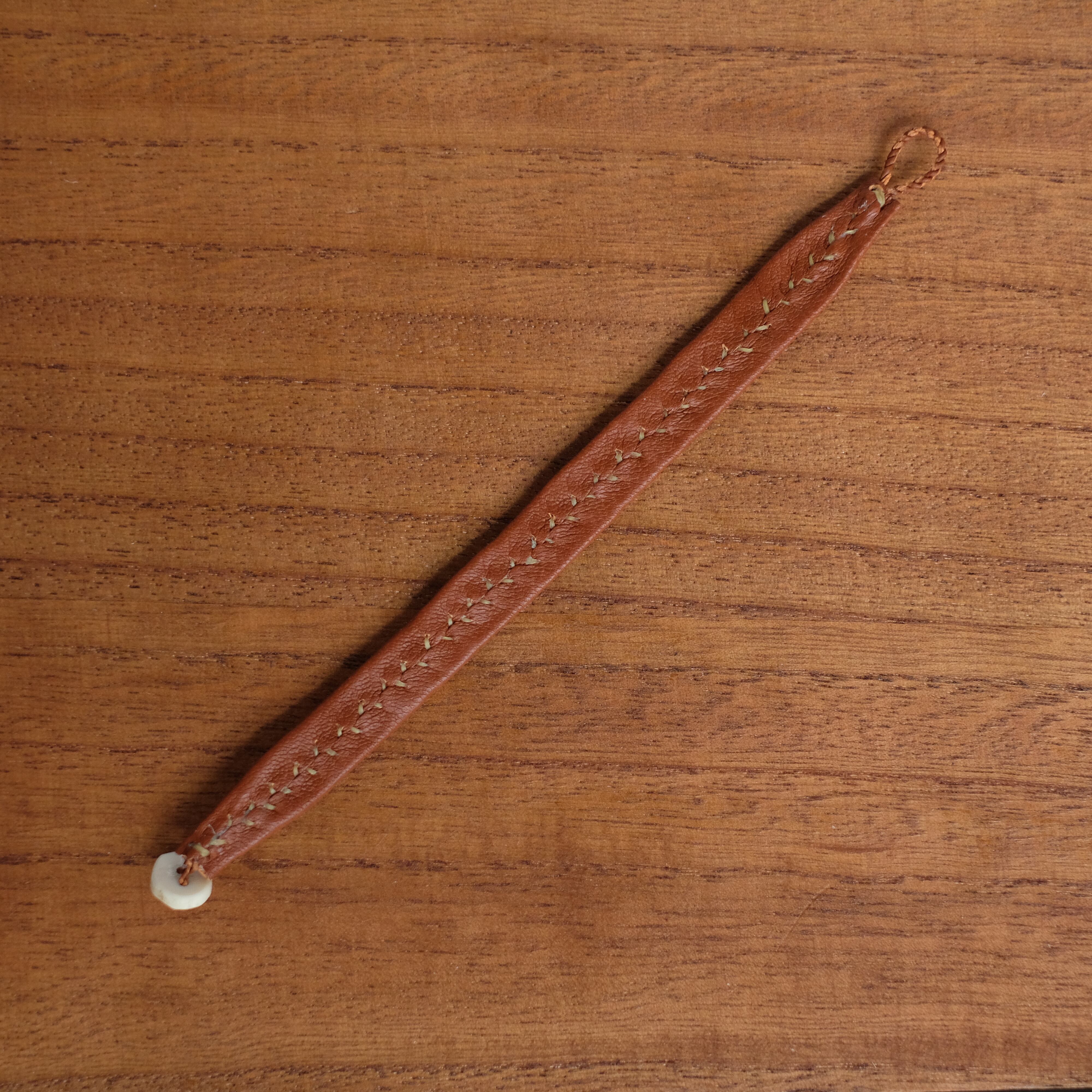 ラップランド地方の北方民族サーミの伝統工芸であるピューターワイヤー刺繍を用いてブレスレットを作りました。本場のサーミブレスレットはトナカイの革と角を使って作りますが、蝦夷鹿が大好きなので蝦夷鹿の革と角を使っています。