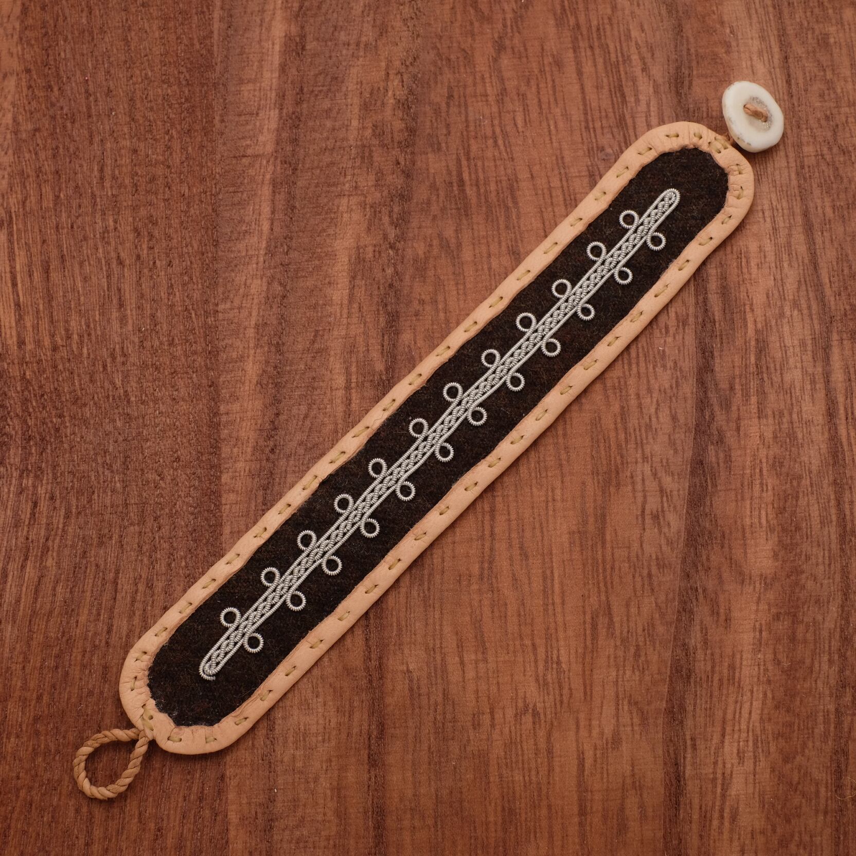 ラップランド地方の北方民族サーミの伝統工芸であるピューターワイヤー刺繍を用いてブレスレットを作りました。本場のサーミブレスレットはトナカイの革と角を使って作りますが、蝦夷鹿が大好きなので蝦夷鹿の革と角を使っています。